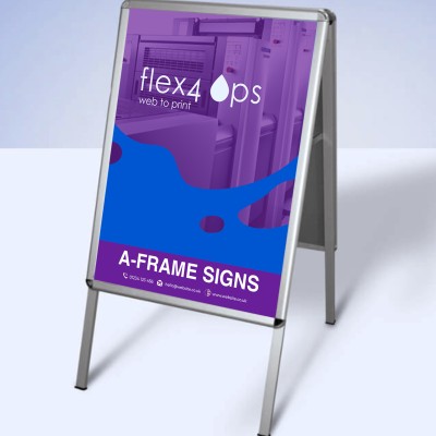 A-Frame Signs are also known as Sandwich Boards. They have double-sided poster display holders and are constructed from two boards hinged together at the top.